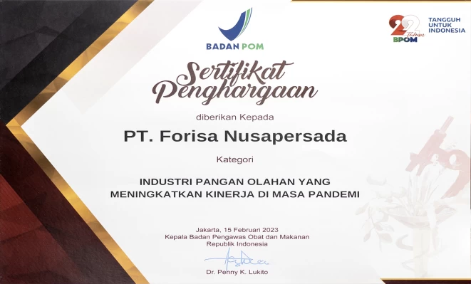 PT Forisa Nusapersada Receives BPOM Recognition for Excelling in Processed...