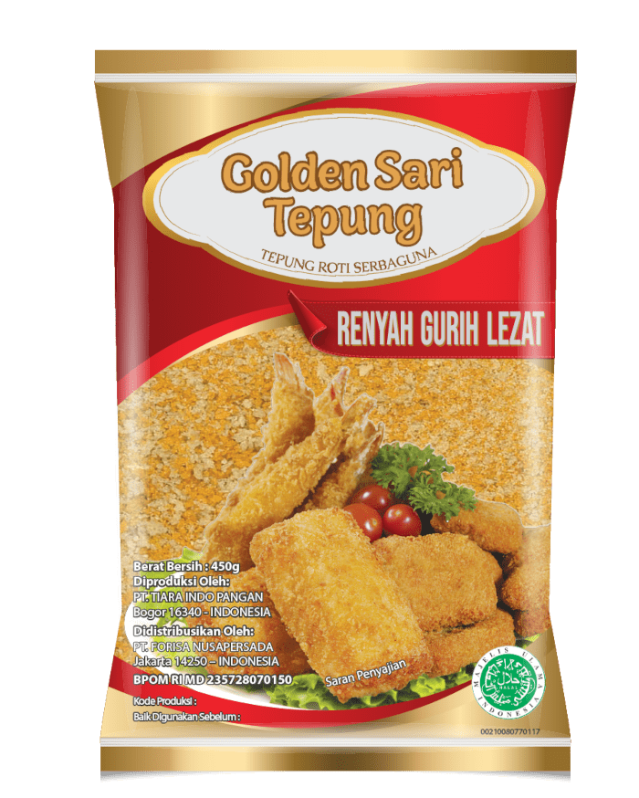 Golden Sari Tepung sangat cocok digunakan untuk membuat udang goreng tepung, risol, nugget, ayam katsu, dll.